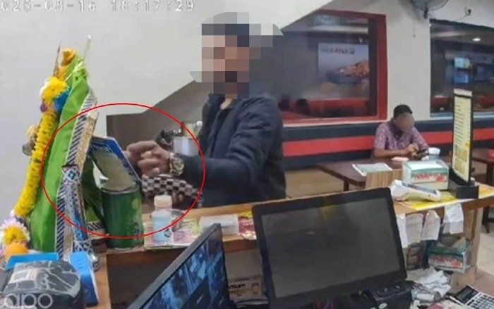உணவக ஊழியர்கள் orderரைத் தயாரிப்பதில் மும்முரமாக இருந்தபோது, அந்த ஆடவன் ஒரு QR குறியீட்டை எடுத்து கட்டண கவுண்டரில் ஒட்டியுள்ளான்.
