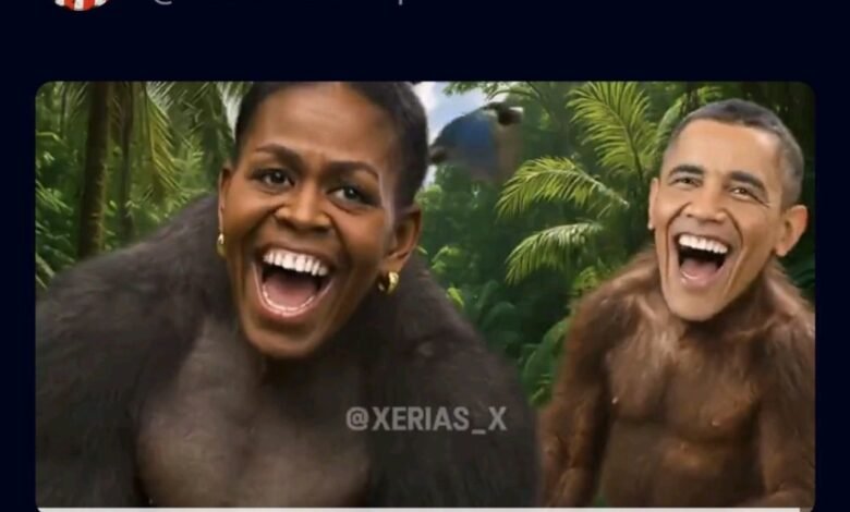 அமெரிக்க அதிபர் டோனல்ட் ட்ரம்ப், தனது Truth Social சமூக ஊடகத்தில் பகிர்ந்த ஒரு வீடியோவில் முன்னாள் அதிபர் பராக் ஒபாமா மற்றும் முன்னாள் முதல் பெண்மணி மிஷெல் ஒபாமா ஆகியோரை குரங்குகளாக காட்டும் காட்சிகள் இடம்பெற்றது பெரும் அதிர்ச்சியை ஏற்படுத்தியுள்ளது.