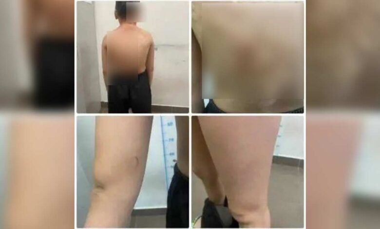 பரிசோதித்ததில், அவனது உடலில் துணி மாட்டும் கம்பி மற்றும் கைப்பேசி charger கம்பியால் அடிக்கப்பட்ட காயங்கள் இருந்தன.