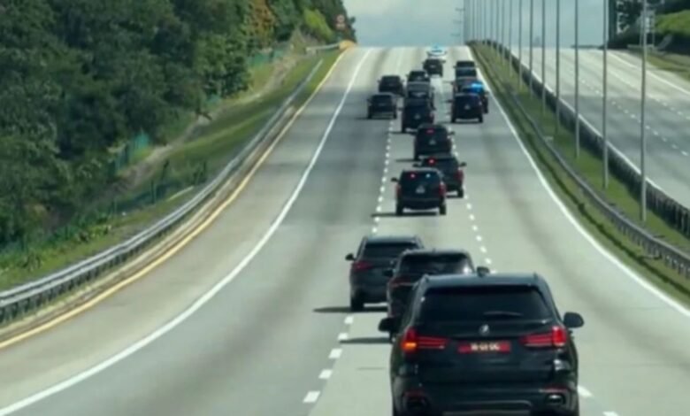 வீடியோவில், KLIA-வில் தொடங்கும் ட்ரம்ப்பின் வாகன ஊர்வலம், சிறந்த சாலைகள் மற்றும் சீரான போக்குவரத்துடன் நகர்கிறது.