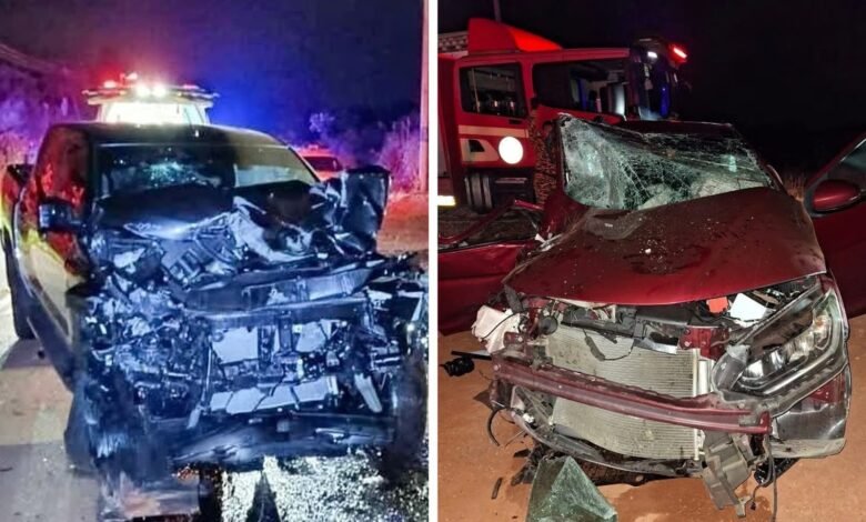 Mitsubishi Triton 4 சக்கர வாகனம், திடீரென சாலையை கடந்து சென்ற எருமையை மோதியதில் கட்டுப்பாட்டை இழந்து, எதிரே வந்த Honda City காரை நேருக்கு நேர் மோதியது.