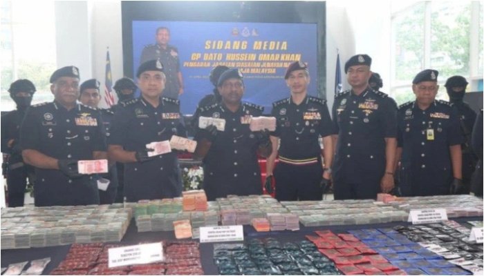 மேலும் இக்கும்பலிடமிருந்து ஒட்டு மொத்தமாக 14.15 மில்லியன் ரிங்கிட் மதிப்புள்ள பல்வேறு போதைப் பொருட்களும் மற்றும் இதர சொத்துக்களும் பறிமுதல் செய்யப்பட்டன.