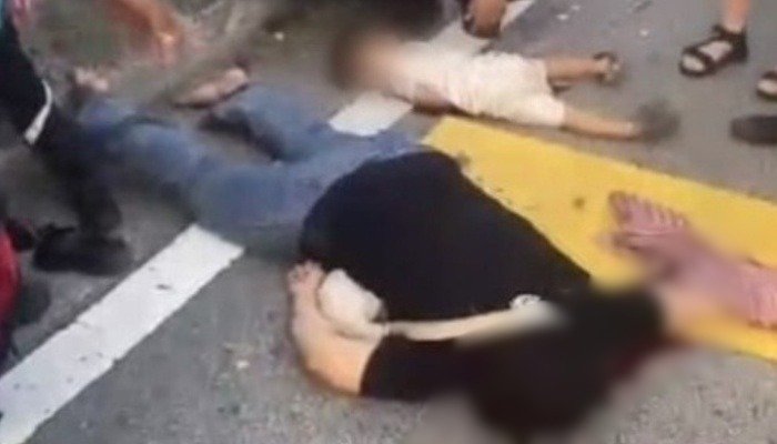 தனது 3 குழந்தைகளையும் ஒரே மோட்டார் சைக்கிளில் ஏற்றிக்கொண்டு பள்ளிக்குச் சென்றபோது இந்த விபத்து நேரிட்டது.
