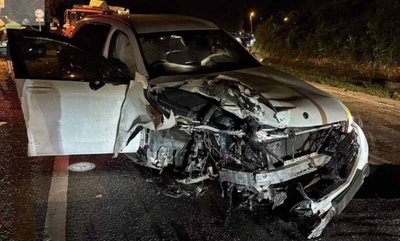 தகவல் அறிந்தவுடனேயே சம்பவ இடத்திற்கு விரைந்த தீயணைப்பு வீரர்கள், காருக்குள் சிக்குண்டு இருந்த மூவரையும் வெளியேற்றினர்.