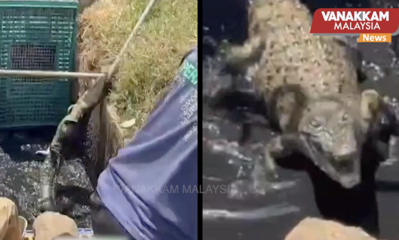 சமூக ஊடகங்களில் வைரலான வீடியோவில், சிலர் எளிய கருவிகளை பயன்படுத்தி அந்த குட்டி முதலையைப் பாதுகாப்பாக பிடிப்பது தெரிகிறது.