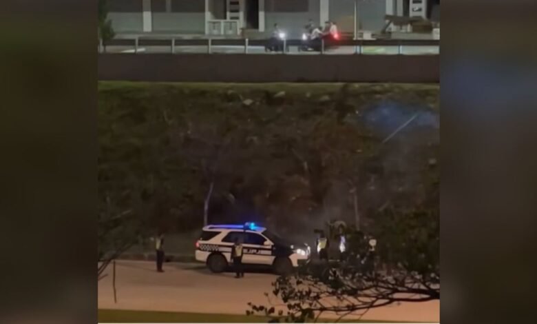 இருவருக்கும் அதிகாரிகள் அபராதம் விதிக்கும் போது, 20–30 பேர் கொண்ட மோட்டார் சைக்கிள் கும்பலொன்று அருகிலுள்ள மலைப்பகுதியிலிருந்து பட்டாசுகளை வீசி பரபரப்பை ஏற்படுத்தினர்.