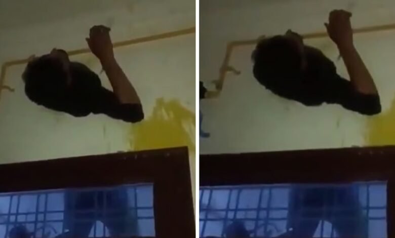 இச்சம்பவம் வீடியோவாக வைரலாகி, சமூக ஊடகங்களில் சிரிப்பையும் அதிர்ச்சியையும் ஏற்படுத்தியுள்ளது.