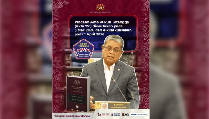 புத்ராஜெயா, ஏப்ரல்-1-2025 ருக்குன் தெத்தாங்கா சட்டத் திருத்தம் அல்லது சட்டம் 751 இன்று, ஏப்ரல் 1 முதல் அதிகாரப்பூர்வமாக அமுலுக்கு வந்துள்ளது.