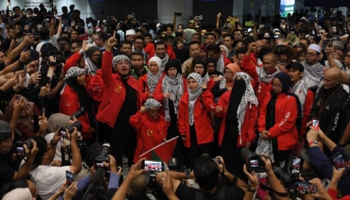 இஸ்ரேலியப் படைகளால் விடுவிக்கப்பட்டதையடுத்து, துருக்கியேவின் இஸ்தான்புல் நகரத்திலிருந்து சிறப்பு விமானம் மூலம் தாயகம் திரும்பியவர்களை, வெளியுறவு அமைச்சர் டத்தோ ஸ்ரீ மொஹமட் ஹசான் எதிர்கொண்டு வரவேற்றார்.