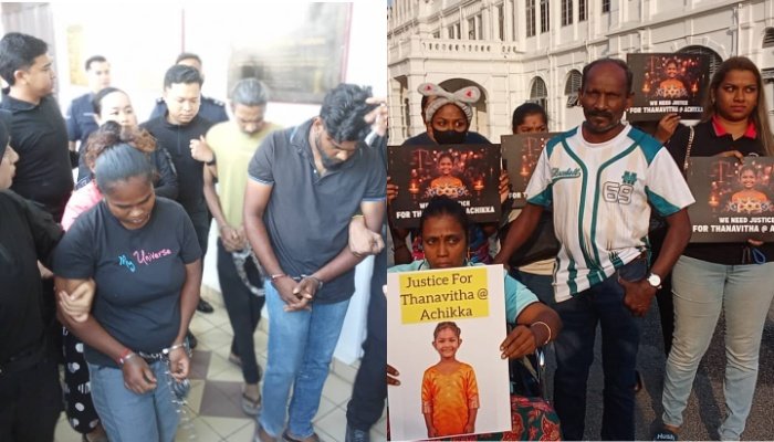 தனித்தனியாக வாசிக்கப்பட்ட குற்றச்சாட்டுகளின் அடிப்படையில், நான்கு குற்றவாளிகளும் கடந்த மாதம் 26 ஆம் தேதி காலை, தைப்பிங்கில் உள்ள தாமான் சுங்கை மாஸ், ஜாலான் 14 இல் உள்ள ஒரு வீட்டில், 9 வயது தானவிதாவை கொலை செய்ததாகக் தண்டனைச் சட்டத்தின் பிரிவு 302 இன் கீழ் கூட்டாகக் குற்றம் சாட்டப்பட்டனர்.