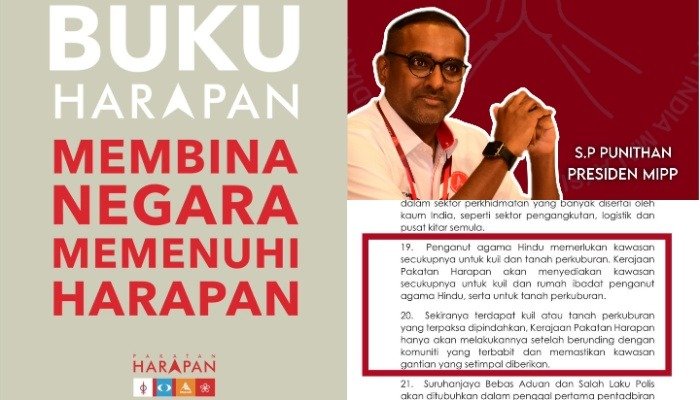 மாநில அளவில் இந்து அறப்பணி வாரியங்கள் அமைப்பதையும், கோயில்கள் மற்றும் சுடுகாடுகளுக்குத் தேவையான நிலம் வழங்குவதையும் PH அதன் தேர்தல் வாக்குறுதியாகக் கொடுத்திருந்ததை, MIPP தலைவர் பி. புனிதன் சுட்டிக் காட்டினார்.