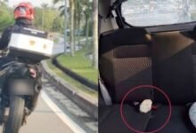 ஜோகூரில் அடாவடி; ஓடும் காரின் மீது கல்லை வீசி கண்ணாடியை உடைத்த மோட்டார் சைக்கிளோட்டி