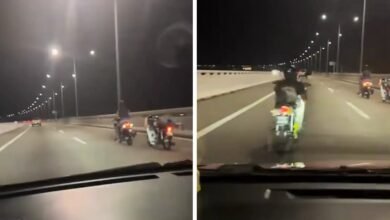 ஜோர்ஜ்டவுன், அக்டோபர்-2 – இரண்டாவது பினாங்கு பாலமான Sultan Abdul Halim Muadzam Shah பாலத்தில் ஆபத்தான முறையில் மோட்டார் சைக்கிளில் ‘சூப்பர்மேன்’ சாகசம் புரிந்த பதின்ம…