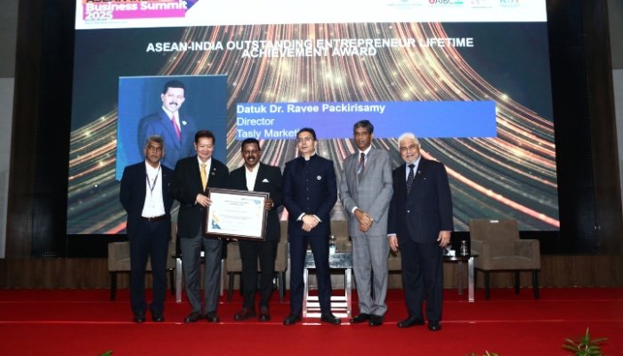 அதில், “ASEAN–India Outstanding Entrepreneur Lifetime Achievement Award” எனப்படுகின்ற வாழ்நாள் சாதனையாளர் என்ற உயரிய விருது ‘Tasly’ நிறுவனத்தின் நிர்வாக இயக்குனர் டத்தோ டாக்டர் ரவி பக்கிரிசாமிக்கு வழங்கப்பட்டது