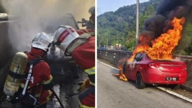 ஈப்போ அருகே PLUS நெடுஞ்சாலையில் தீப்பிடித்த கார்; உயிர் தப்பிய வயதான தம்பதி