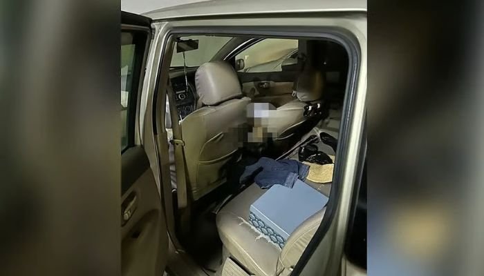 கார் உள்ளிருந்து பூட்டப்பட்டிருந்ததால் தீயணைப்பு வீரர்கள் காரைத் திறக்க உதவினர்.